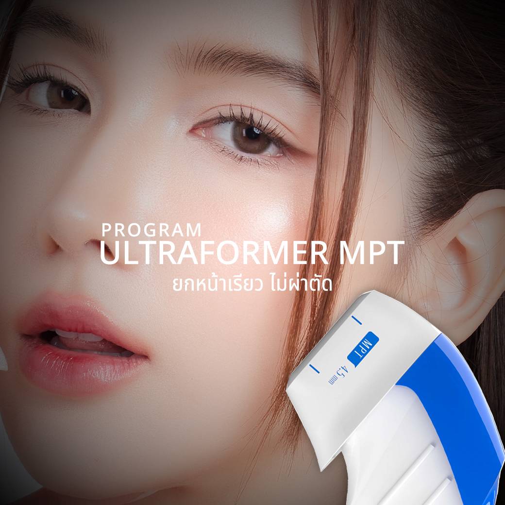 Ultraformer MPT เป็นโปรแกรมยกกระชับใบหน้าที่มีความปลอดภัย มีหลากหลายระดับความลึกของหัว สามารถปล่อยพลังงาน ได้หลากหลายชั้นผิว ใน 1 line สามารถปล่อยพลังงานออกมาได้ถึง 417 dots เป็นโปรแกรมที่ยิงเร็วกว่า Ultraformer รุ่นอื่น 2.5 เท่า จึงทำให้ใช้เวลาในการทำน้อยลง ริ่มเห็นผลลัพธ์ได้ใน 1-3 เดือน และสามารถคงผลลัพธ์ได้นาน 6-8 เดือน ทั้งนี้ ผลลัพธ์ที่ได้ ขึ้นอยู่กับสภาพผิวการใช้ชีวิตประจำวัน และการดูแลของแต่ละบุคคล